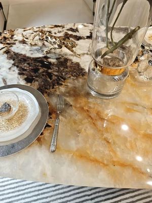 Artisan Excellence: Precision-cut and meticulously polished, the tabletop boasts a mirror-smooth surface with seamlessly refined edges. Each touch delivers a luxurious sensory experience, showcasing the pinnacle of craftsmanship.