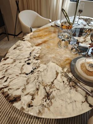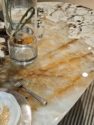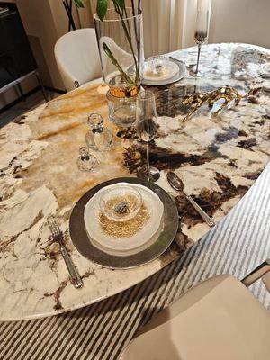 This art dining table merges the poetry of nature with the graceful essence of marble, turning everyday meals into a delightful dialogue with art and nature. It is both a tribute to the wonders of the natural world and an ultimate expression of high-quality living. Choose it to let the unique rhythm of nature flow through your space, redefining life amidst the fusion of nature and art—and transforming your home into an eternal sanctuary of artistry.