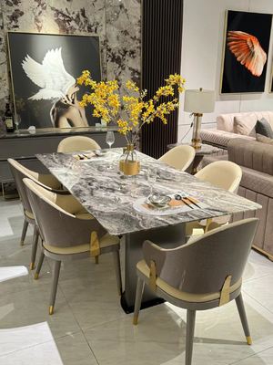 This luxury dining table merges the natural poetry of Europe with the graceful essence of marble, turning everyday meals into a delightful dialogue with art and nature. It is both a tribute to the natural wonders of Europe and an ultimate expression of high-quality living. Choose it to let the unique rhythm of Europe flow through your space, redefining life amidst the fusion of nature and art—and transforming your home into an eternal sanctuary of artistry.