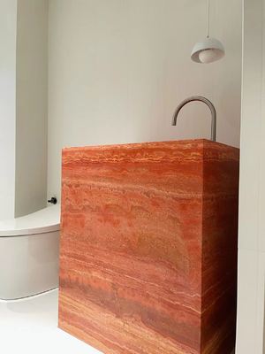 Durability: Treated with specialized techniques, the Iranian red travertine’s hardness and wear resistance are enhanced, making it suitable for daily use in bathroom environments. The natural textures develop a rustic elegance over time, witnessing the warmth and evolution of your bathroom space.