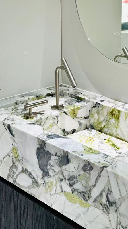 Owning this Cold Emerald Jade Ice Green Marble Elegant Washbasin is like bringing the mystery of emerald mineral veins and the refined elegance of a bathroom space into your home. Crafted from rare Cold Emerald Jade Ice Green Marble—a treasure carrying hundreds of millions of years of geological memory—its translucent, luminous emerald-like base is interlaced with ink-black ribbons and light green veining, evoking an artistic masterpiece that depicts the hidden wonders of the earth. Artisans have poured their dedication into polishing every inch of the washbasin, condensing nature’s mystery and the practical elegance of bathroom design into a piece that harmonizes functionality with artistic value. It is not merely a washbasin for daily use but a centerpiece that redefines bathroom elegance with its unique artistic sensibility.