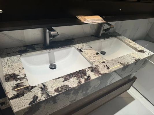 Owning this Snowy Mountain Blue Marble Elegant Vanity Top is like bringing the majestic snow-capped mountain scenery and the elegance of sophisticated living into your home. Crafted from rare Snowy Mountain Blue Marble—a treasure carrying hundreds of millions of years of geological memory—its pure, layered snow-white base is interlaced with deep gray veins and ink-blue patterns, evoking an artistic masterpiece that depicts the hidden beauty of snow-capped mountains. Artisans have poured their dedication into polishing every inch of the surface, condensing nature’s grandeur and grace into a piece that harmonizes functionality with artistic value. It is not merely a functional surface but a centerpiece that redefines spatial elegance with its unique artistic sensibility.