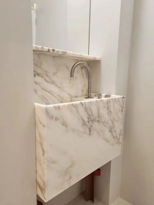 Owning this Calacatta Crestola Marble Vanity Top is like bringing the dazzling beauty of golden mineral veins and the refined elegance of sophisticated living into your home. Crafted from rare Calacatta Crestola Marble—a treasure carrying hundreds of millions of years of geological memory—its pure, layered warm jade-like base is interlaced with golden veins and warm brown patterns, evoking an artistic masterpiece that depicts the hidden wonders of the earth. Artisans have poured their dedication into polishing every inch of the surface, condensing nature’s brilliance and grace into a piece that harmonizes functionality with artistic value. It is not merely a functional surface but a centerpiece that redefines spatial elegance with its unique artistic sensibility.